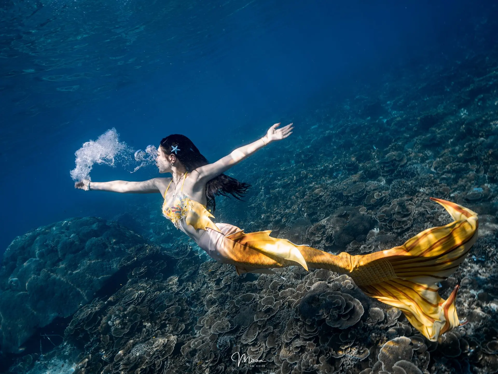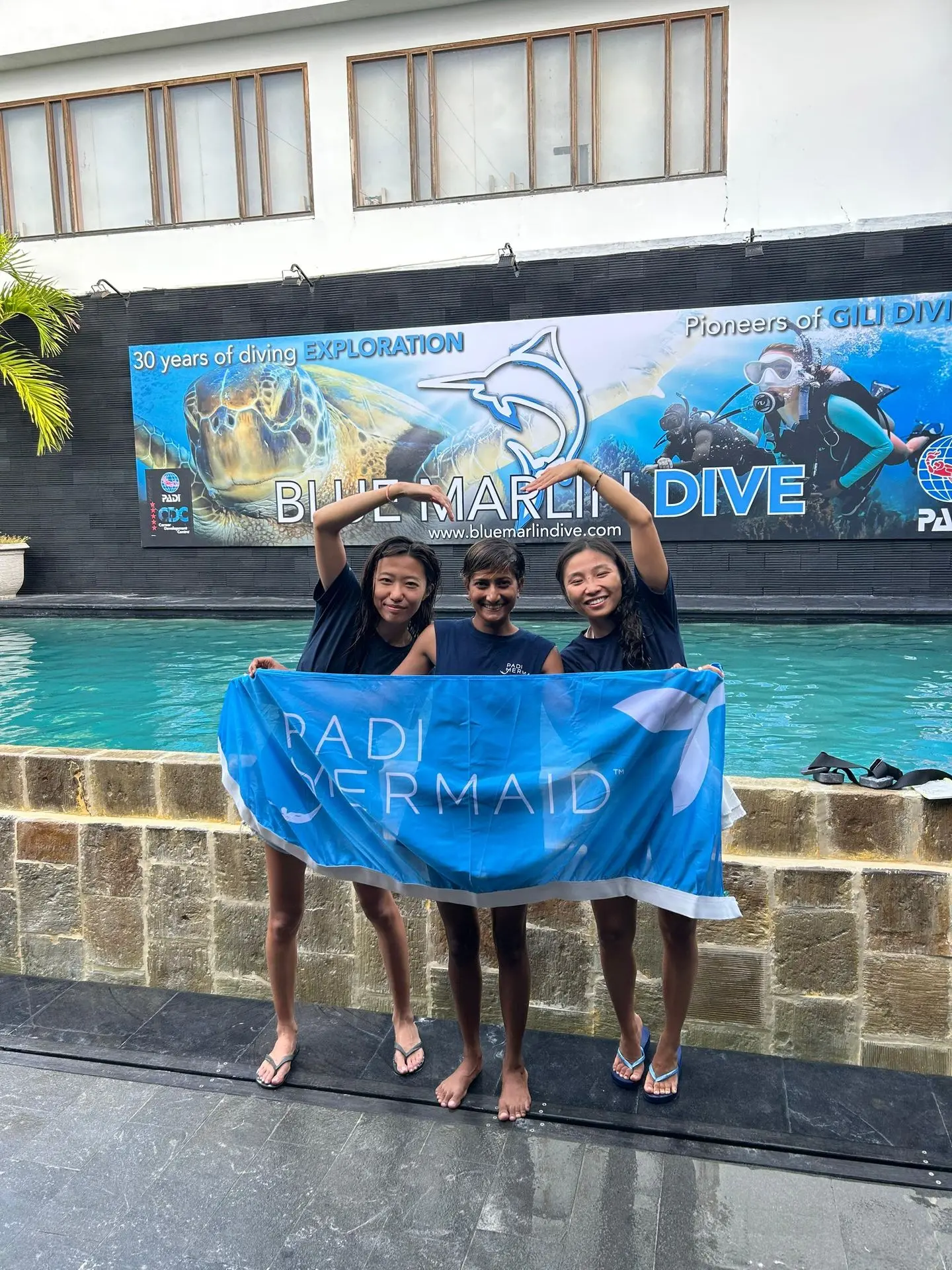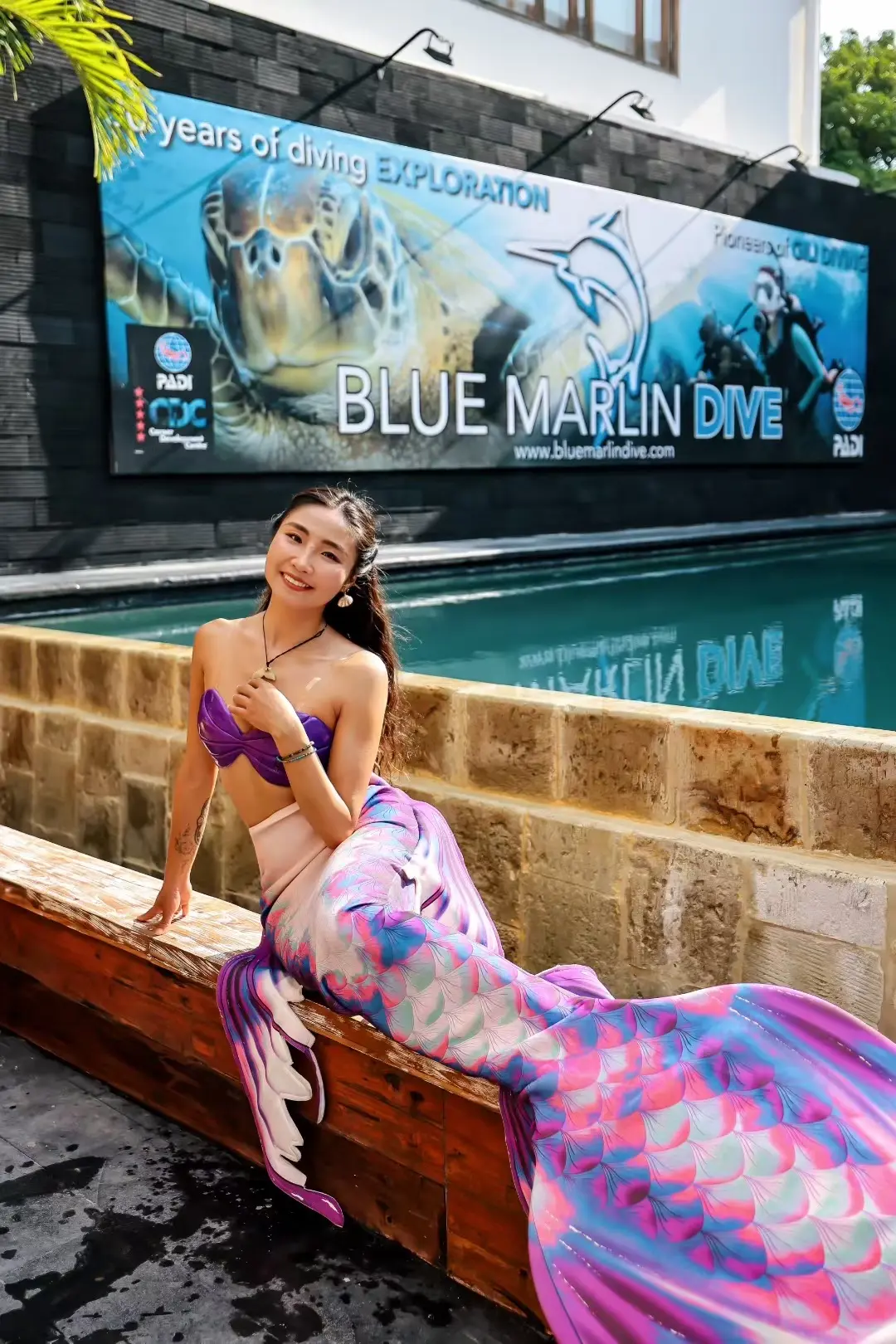 Become a real-life mermaid with Blue Marlin Gili Trawangan — the only dive centre in the Gili Islands offering official PADI Mermaid courses. Guided by one of Asia’s leading PADI Mermaid Instructor Trainers, you’ll learn to swim gracefully with a monofin, build proper breath control, and explore the water in a completely new way.