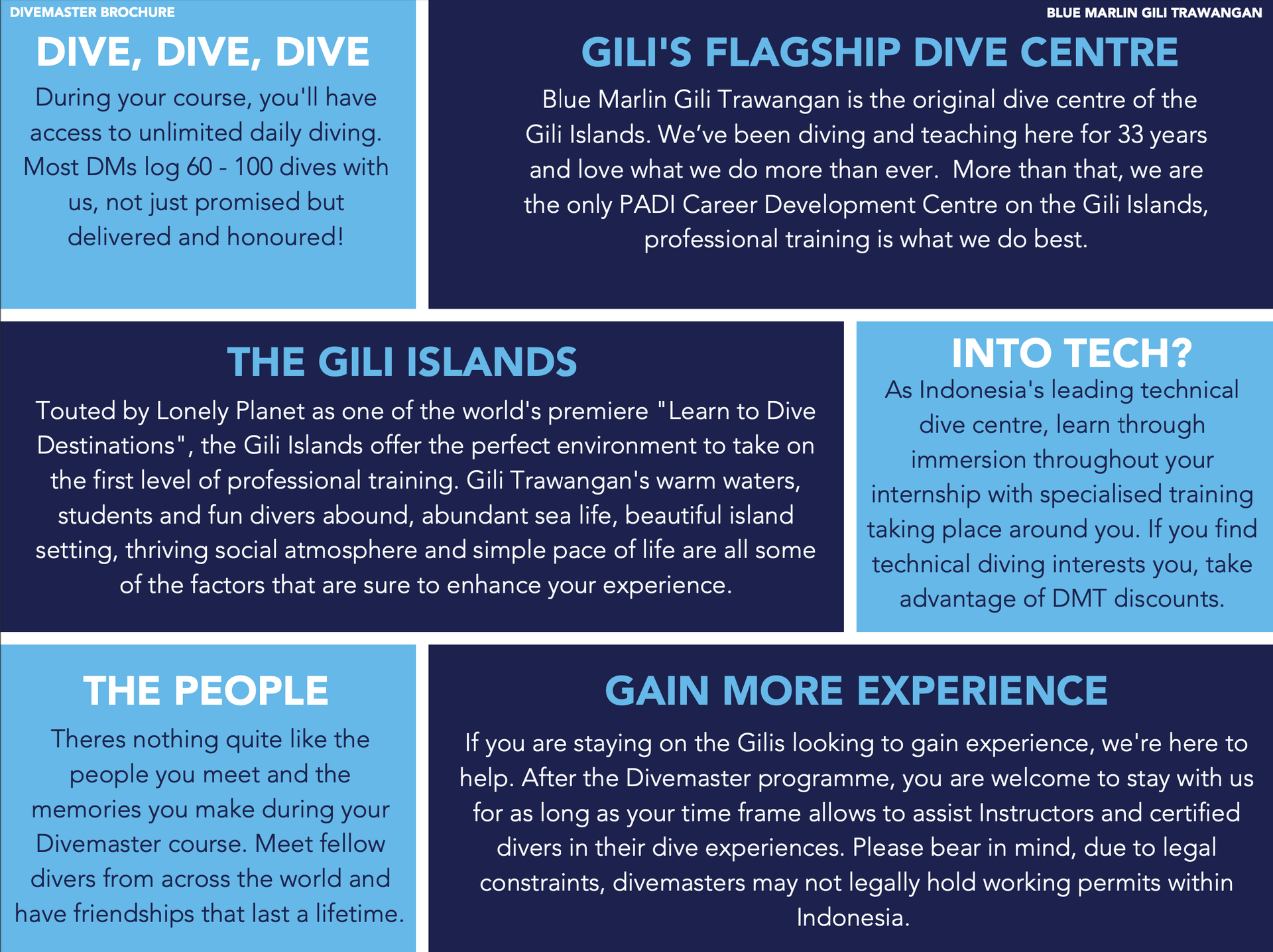 The Divemaster course is always voted everyone’s favourite — it’s not just about training, it’s about bonding with your island crew, sharing dives, and going out to enjoy everything Gili T has to offer together. It’s a course filled with laughs, friendships, and unforgettable moments both underwater and on land.